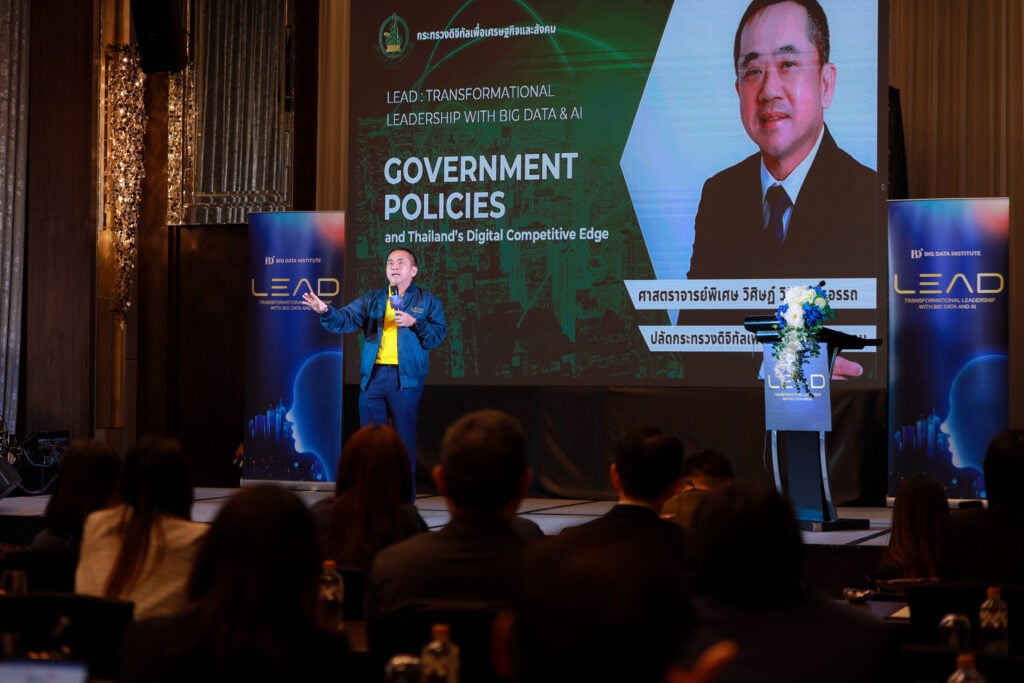 5 กรกฎาคม 2567, กรุงเทพฯ – สถาบันข้อมูลขนาดใหญ่ (องค์การมหาชน) ขานรับนโยบายรัฐบาลและกระทรวงดีอี มุ่งยกระดับองค์กรและภาคธุรกิจด้วยเทคโนโลยี Big Data และ AI อย่างเต็มรูปแบบ เดินหน้าเกมรุกครั้งสำคัญ เปิดตัวหลักสูตร “ผู้นำยุคใหม่ พลิกโฉมธุรกิจด้วย Big Data และ AI” (LEAD: Transformational Leadership with Big Data and AI) เสริมแกร่งผู้บริหารและผู้นำองค์กร ก้าวสู่การเป็นหนึ่งด้านเทคโนโลยี และเพิ่มขีดความสามารถทางการแข่งขันของประเทศไทย โดยได้รับเกียรติจากนายประเสริฐ จันทรรวงทอง รัฐมนตรีว่าการกระทรวงดิจิทัลเพื่อเศรษฐกิจและสังคม (กระทรวงดีอี) เป็นประธานเปิดหลักสูตร พร้อมด้วยศาสตราจารย์พิเศษวิศิษฏ์ วิศิษฏ์สรอรรถ ปลัดกระทรวงดีอี ร่วมเป็นวิทยากรบรรยายหลักสูตรดังกล่าว