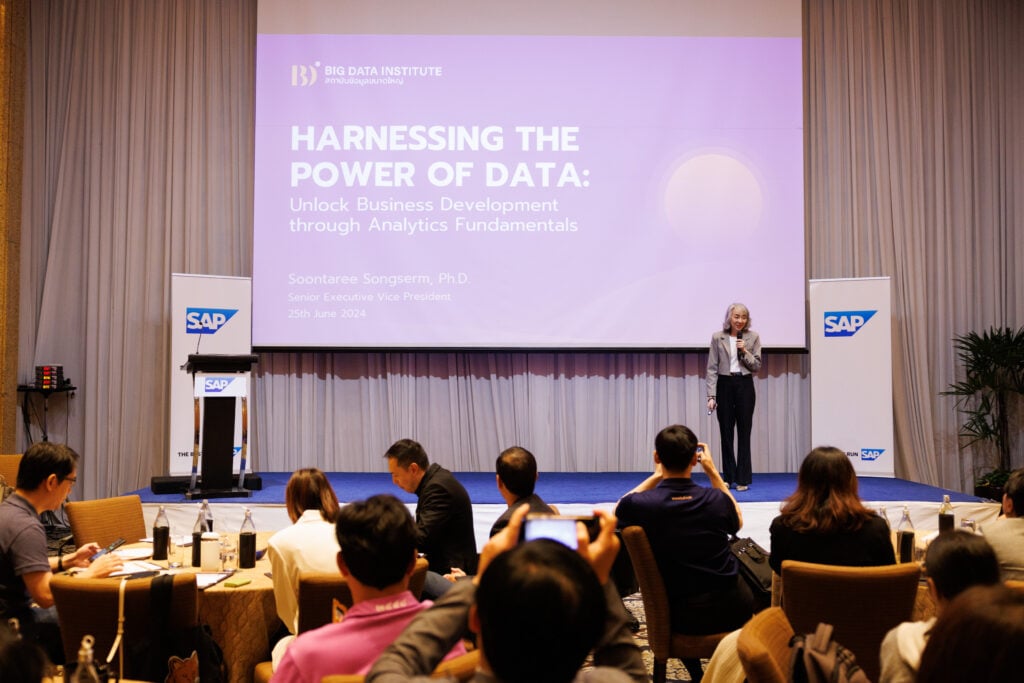 25 มิถุนายน 2567, กรุงเทพฯ – สถาบันข้อมูลขนาดใหญ่ (องค์การมหาชน) หรือ BDI โดย ดร.สุนทรีย์ ส่งเสริม รองผู้อำนวยการสถาบันฯ กลุ่มงานส่งเสริมธุรกิจและองค์ความรู้ ร่วมเป็นวิทยากรบรรยายในงาน Scaling Thai SMEs: Leveraging Digitalization to Create Thai Global Champions จัดโดย SAP เพื่อมุ่งส่งเสริมโอกาสให้แก่ผู้ประกอบการขนาดกลางและขนาดย่อมของไทยให้มีศักยภาพพร้อมเติบโตก้าวสู่ตลาดโลก ณ โรงแรมเชอราตัน แกรนด์ สุขุมวิท