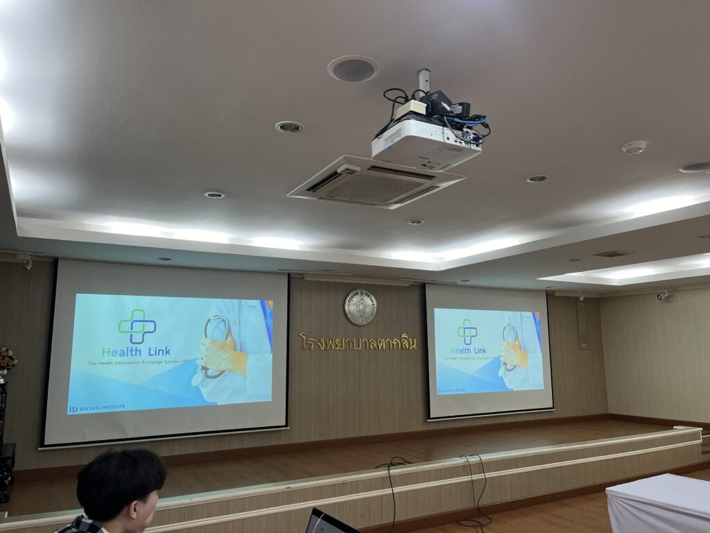 นางสาวน้ำฝน ประโพธิ์ศรี ผู้อำนวยการโครงการ Health Link พร้อมด้วยทีมงานโครงการ Health Link สถาบันข้อมูลขนาดใหญ่ (องค์การมหาชน) ร่วมนำเสนอโครงการและสาธิตวิธีการใช้งานแพลตฟอร์ม Health Link แพลตฟอร์มเชื่อมโยงข้อมูลสุขภาพระหว่างสถานพยาบาลทั่วประเทศ ช่วยอำนวยความสะดวกให้แพทย์สามารถดูข้อมูลประวัติการรักษาได้ทันที วินิจฉัยและวางแผนการรักษาได้อย่างรวดเร็วและแม่นยำ อีกทั้งประชาชนสามารถเข้ารับการรักษาได้ในสถานพยาบาลทั่วประเทศที่เชื่อมต่อข้อมูลไว้แล้วโดยไม่ต้องเสียเวลาและค่าใช้จ่ายในการขอประวัติ ภายในกิจกรรม Lunch Symposium ในการประชุมองค์กรแพทย์ โรงพยาบาลตากสิน โดยมีแพทย์และพยาบาลเข้าร่วมฟังการนำเสนอกว่า 30 คน ณ ห้องประชุมสุนทรนนท์ อาคารสมเด็จพระเจ้าตากสินมหาราช เมื่อวันที่ 30 มิถุนายน 2567