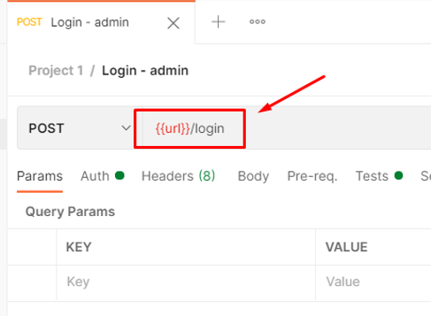 - การใช้งาน environment สามารถกดเปลี่ยนได้ตามต้องเลยที่ด้านบนขวาของโปรแกรม ส่วนการเรียกใช้ค่าตัวแปร จะสามารถอ้างถึงได้โดยใส่ {{variable_name}} เช่น ในตัวอย่างของเรา ชื่อตัวแปรเราคือ url วิธีเรียกใช้จึงเป็น {{url}} ตามรูปตัวอย่างด้านล่าง