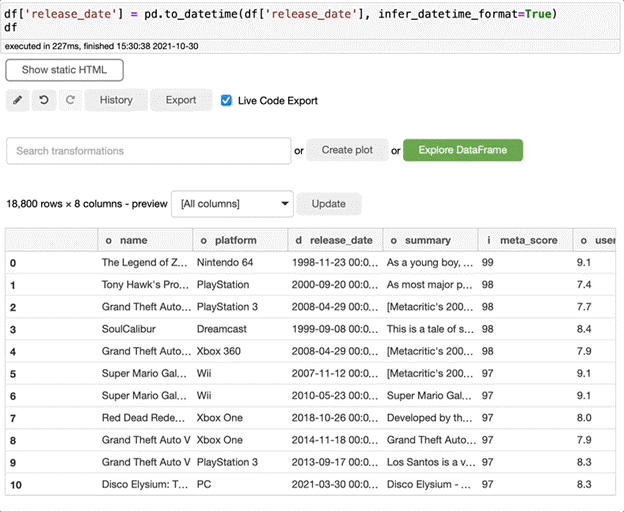 เราสามารถเลือกให้แสดงผลเฉพาะบางคอลัมน์ได้ เช่น ต้องการให้ในข้อมูลมีแค่ชื่อเกม เครื่องเล่น เเละคะแนน ที่เป็นประโยชน์ในการนำไปใช้งานต่อ สิ่งที่ต้องทำคือ ให้พิมพ์ “select” ในกล่อง “Search transformation” จากนั้น เลือกคอลัมน์ชื่อเกม เครื่องเล่น เเละคะแนน เมื่อเลือกคอลัมน์ที่คุณต้องการเสร็จแล้ว ให้คลิกที่ “execute” ข้อมูลจะแสดงเพียงแค่คอลัมน์ที่เราเลือกนั่นเอง