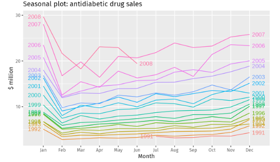ขวา 2.4 Seasonal plots | Forecasting: Principles and Practice (2nd ed)