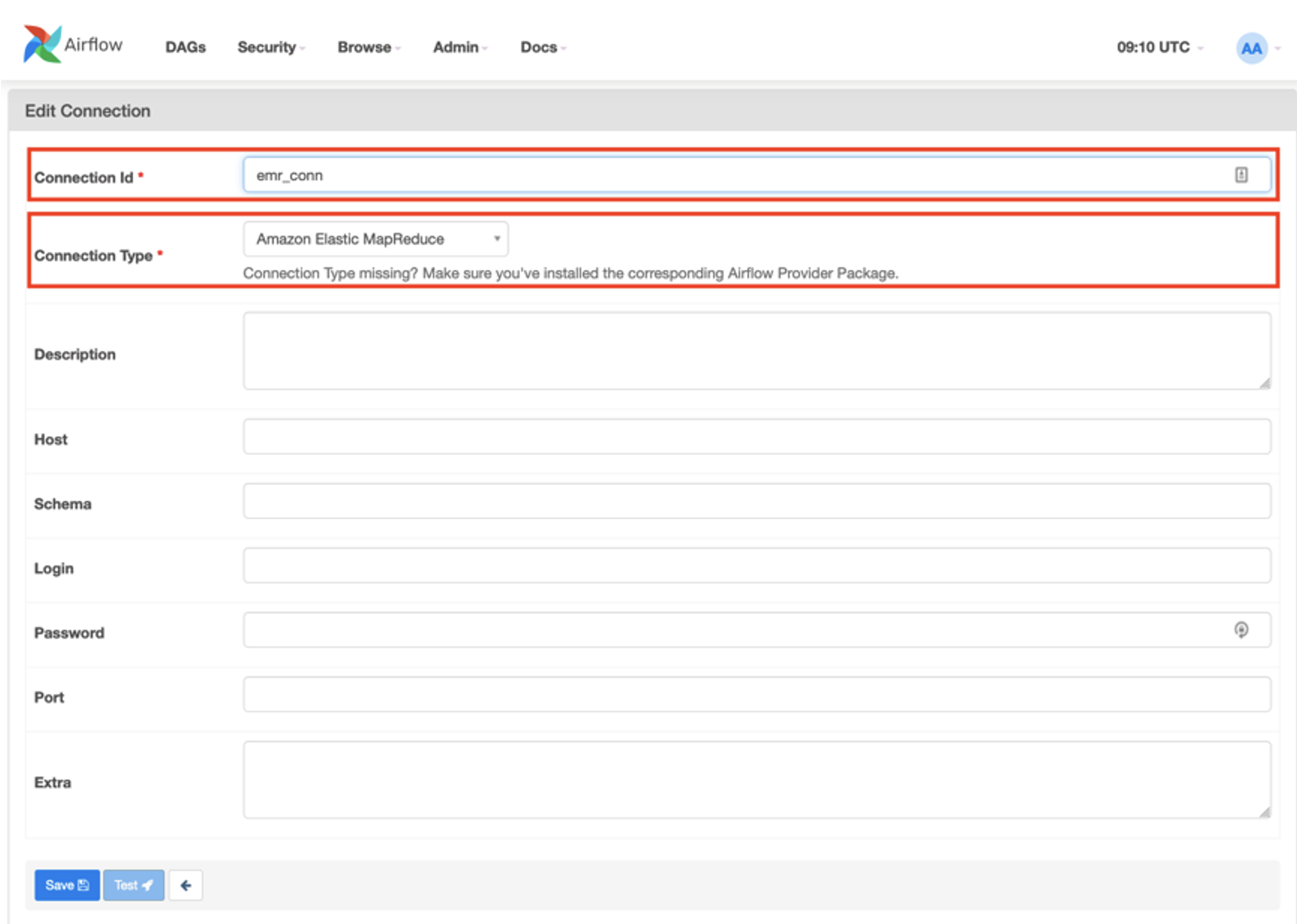 เราจะสร้างอีก 1 Airflow Connection โดยเลือก Connection Type เป็น Amazon Elastic MapReduce ส่วนค่าต่าง ๆ ให้ปล่อยว่างไว้ เพราะเราไม่ได้ต้องการที่จะ Override ค่า Setting อะไรของ EMR