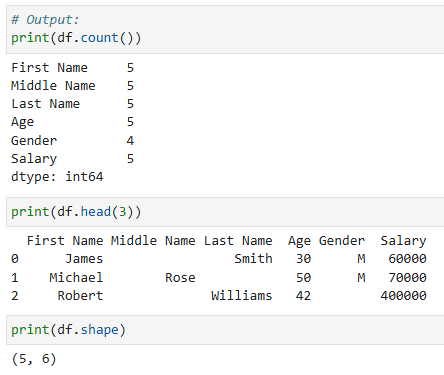 - df.count() จะให้ค่ากลับมาเป็นการนับจำนวนข้อมูลที่ไม่เป็น Null ในแต่ละ column