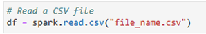 และสามารถอ่านไฟล์ได้ เช่น การอ่าน csv file ด้วยฟังก์ชัน spark.read.csv