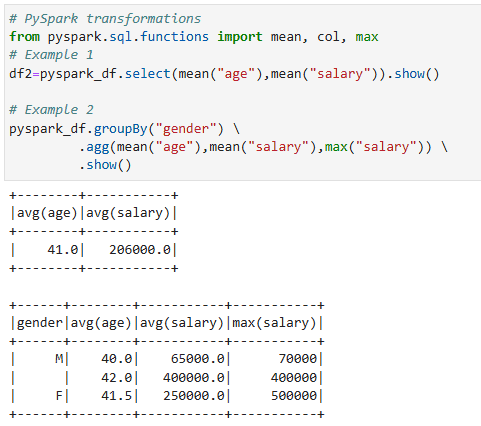 ตัวอย่าง PySpark Transformations