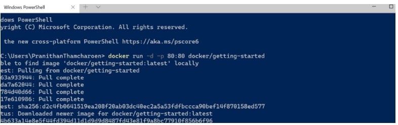 หลังจากที่เราได้ตัว images แล้วให้ทำการดึงลงมาจาก Docker Hub และ รันตัว Docker นั้นโดยใช้คำสั่ง