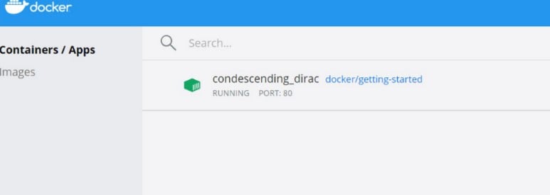 จากนั้นเข้าไปตรวจสอบว่า Docker container นั้นทำการรันอยู่หรือไม่ โดย เข้าไปที่ Docker Desktop ที่ notification area จะเห็นว่า container เราได้รันอยู่ดังภาพตัวอย่าง