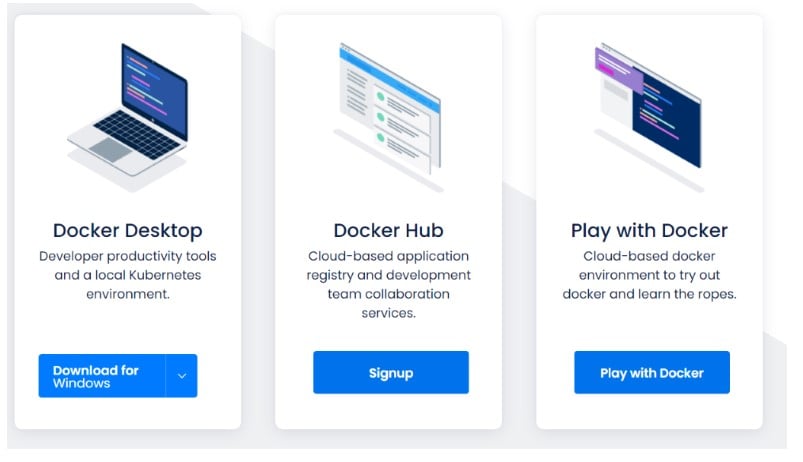 เริ่มจากไปที่เว็บ Docker เพื่อ ดาวน์โหลด ตัวติดตั้ง และถ้าใครอยากได้ข้อมูลเพิ่มเติมสามารถเข้าไปดูได้ที่เว็บไซต์ Docker overview ได้เลย