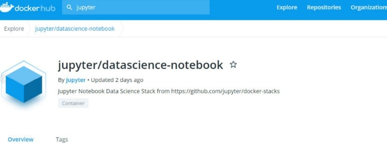 ซึ่งเราสามารถค้นหาชื่อหรือเครื่องที่ใช้ได้เลย อย่างเช่น Tensorflow Jupyter เป็นต้น ซึ่งในบทความนี้เราจะยกตัวการดึง Docker image ของ Jupyter มาใช้กัน