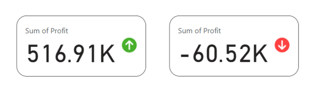 บทความนี้จะอธิบายถึงการสร้างไอคอนที่มีการเปลี่ยนแปลงไปตามข้อมูลหรือ Dynamic icons ที่ใช้งานในโปรแกรม Power BI ตัวอย่างดังรูปที่ 1 เมื่อค่าผลรวมกำไรมีค่ามากกว่า 0 จะแสดงสัญลักษณ์ลูกศรชี้ขึ้นสีเขียว แต่หากค่าผลรวมกำไรมีค่าน้อยกว่า 0 จะแสดงสัญลักษณ์ลูกศรชี้ลงสีแดง