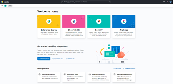 สามารถเข้าถึง Kibana ได้ที่ http://localhost:5601 (Server IP ที่ติดตั้ง Kibana) โดยตรวจสอบ Firewall และการเปิด port 5601 เพื่อให้สามารถเข้าถึง URL ดังกล่าว