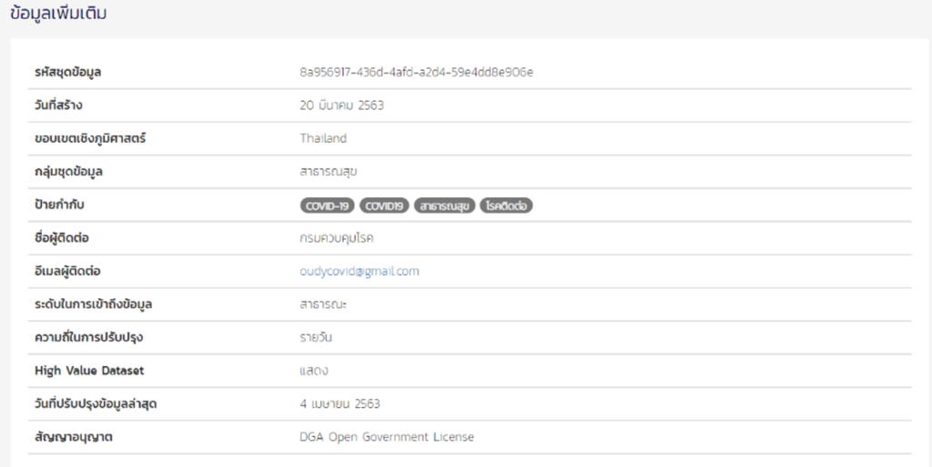 ข้อมูลเกี่ยวกับโรคระบาดโควิด-19 ที่เปิดเผยบน Open Data