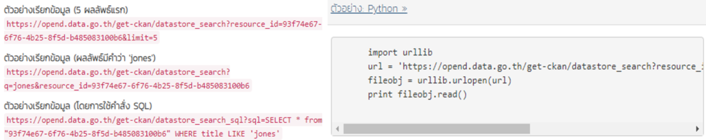 resp = requests.get('https://opend.data.go.th/get-ckan/datastore_search?resource_id=93f74e67-6f76-4b25-8f5d-b485083100b6&limit=1500',headers={'api-key': '< ระบุ API Key ของท่าน >'})