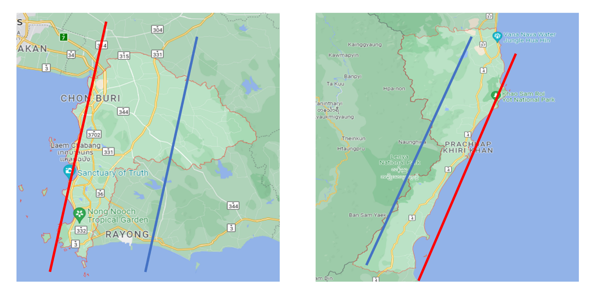 ในส่วนนี้เราจะนำการใช้ Principal Component Analysis [3]เพื่อนำแนวความคิดของการใช้ diagonal มาใช้กับเมืองที่อยู่ติดชายฝั่ง แต่อาจจะไม่ได้เฉียงจากซ้ายบนลงขวาล่าง โดยจังหวัดในประเทศไทยที่เข้าข่ายนี้ ได้แก่ ชลบุรี และ ประจวบครีขันธ์
