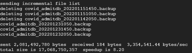 ส่วนสุดท้าย ทำการลบไฟล์สำรองที่มีอายุเกิน 7 วัน เพื่อป้องกันไม่ให้ขนาดที่เก็บไฟล์สำรองมีพื้นที่เพิ่มขึ้นเรื่อย ๆ จนกินทรัพยากรของเครื่องจนเกินไป