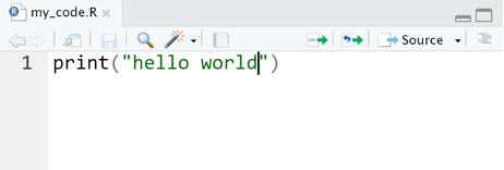 ให้เราเปิดหน้าต่าง Script (ซ้ายบนของ Rstudio ขึ้นมา) และเริ่มเขียนโค้ดที่เราต้องการ กด Save File เป็นไฟล์นามสกุล .R เราสามารถดาวน์โหลดไฟล์ Script จาก Cloud ลงมาทำงานต่อใน Local Computer ของเราได้อีกด้วย หรือส่งต่อให้ทีมของเราพัฒนาโปรแกรมต่อ