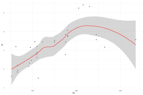 ggplot(mtcars, aes(hp, wt)) +