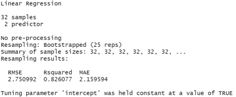 lm_model <- train(mpg ~ hp + wt, data = mtcars, method = "lm")
