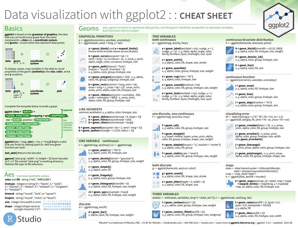สำหรับทุกคนที่อยากเรียนและฝึกฝน R ต่อ เราแนะนำดาวน์โหลด cheatsheets ของ RStudio มาเก็บไว้ติดตัวได้เลย เค้าทำสรุป Functions สำคัญให้เราไว้หมดแล้ว มีตั้งแต่การทำ Data Transformation, Data Visualization ไปจนถึงการจัดการ String, Factor และอีกมากมาย (อัพเดทใหม่ทุกปี)