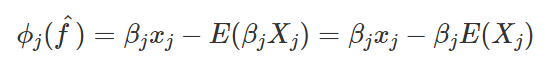 ค่าผลกระทบของ ϕj ที่ค่าของฟีเจอร์ตัวที่ j จะถูกเขียนได้เป็น