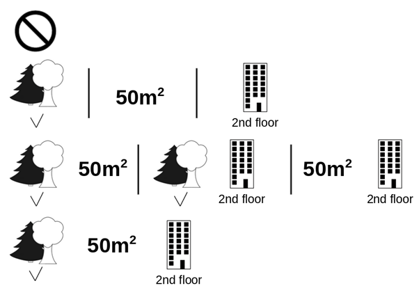 - อยู่ใกล้สวน และ มีพื้นที่ 50 m2