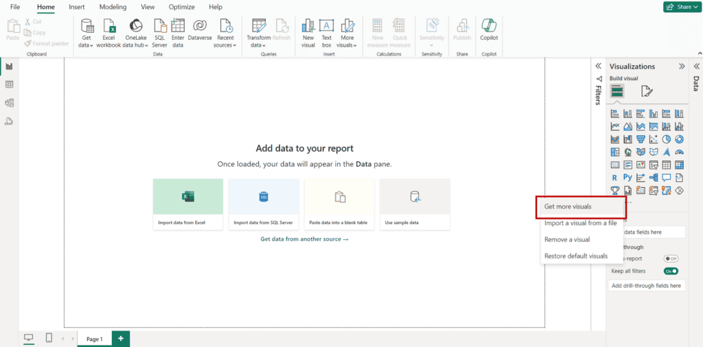 รูปที่ 3 การนำเข้า Visual ใน Power Bi