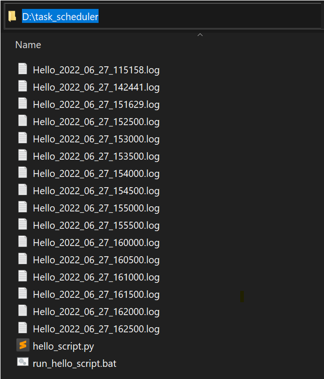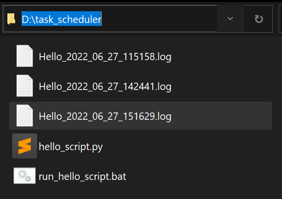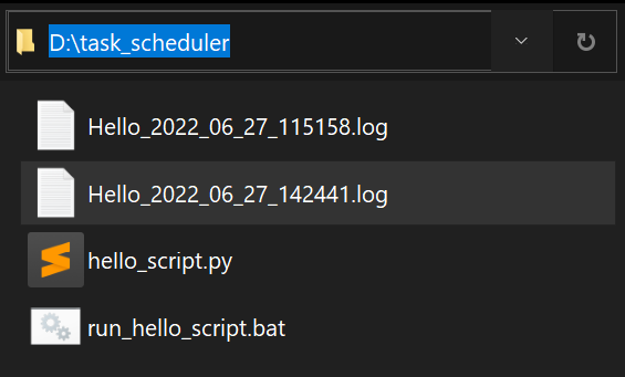 หากทดลองดับเบิ้ลคลิก run_hello_script.bat เพื่อสั่งการ python script จะเห็นว่ามี log file ใหม่เพิ่มขึ้นมา