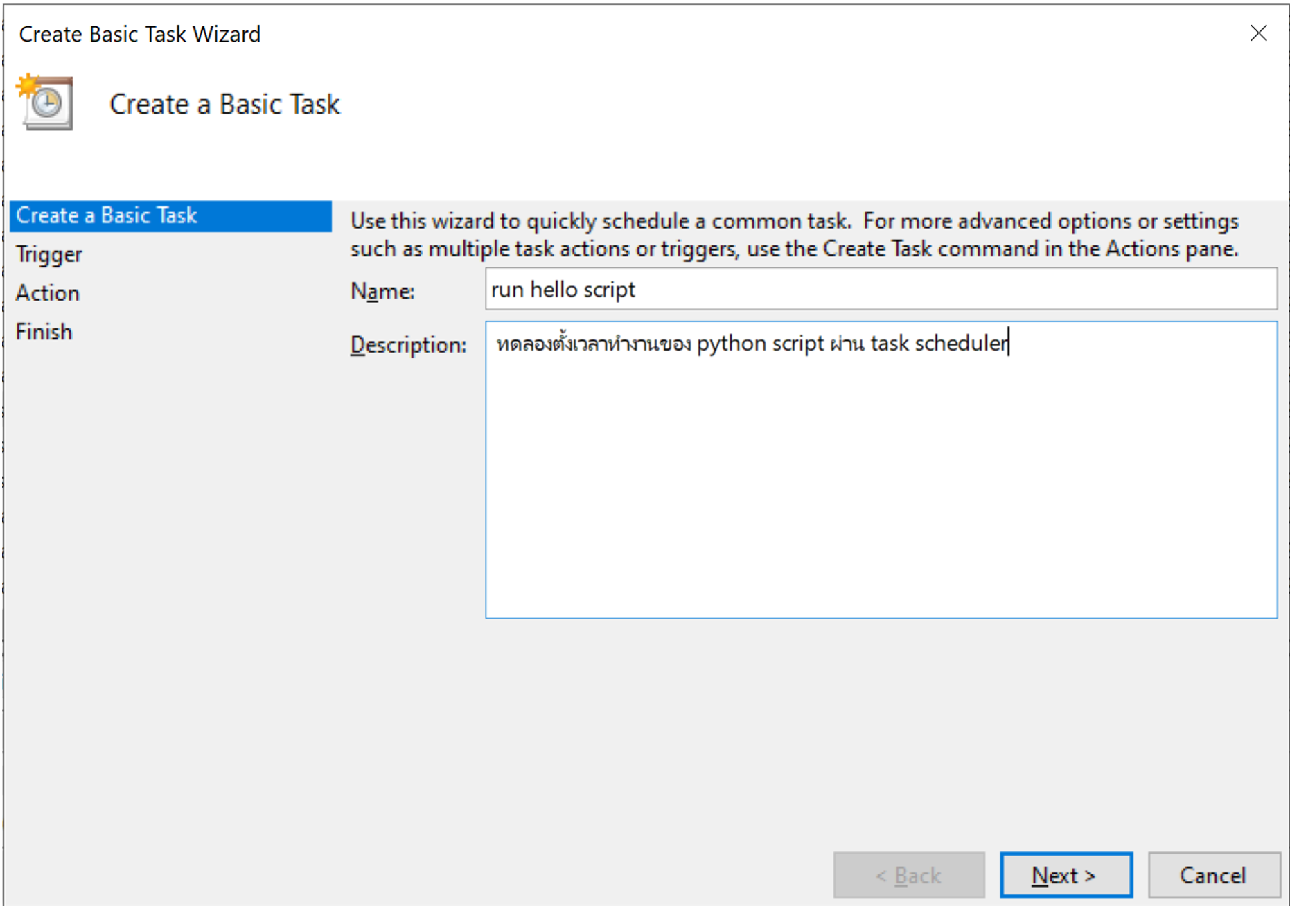 3.1 วิธีการสร้าง Basic Task เพื่อสั่งการทำงาน Batch Script ตามรอบเวลาที่กำหนด