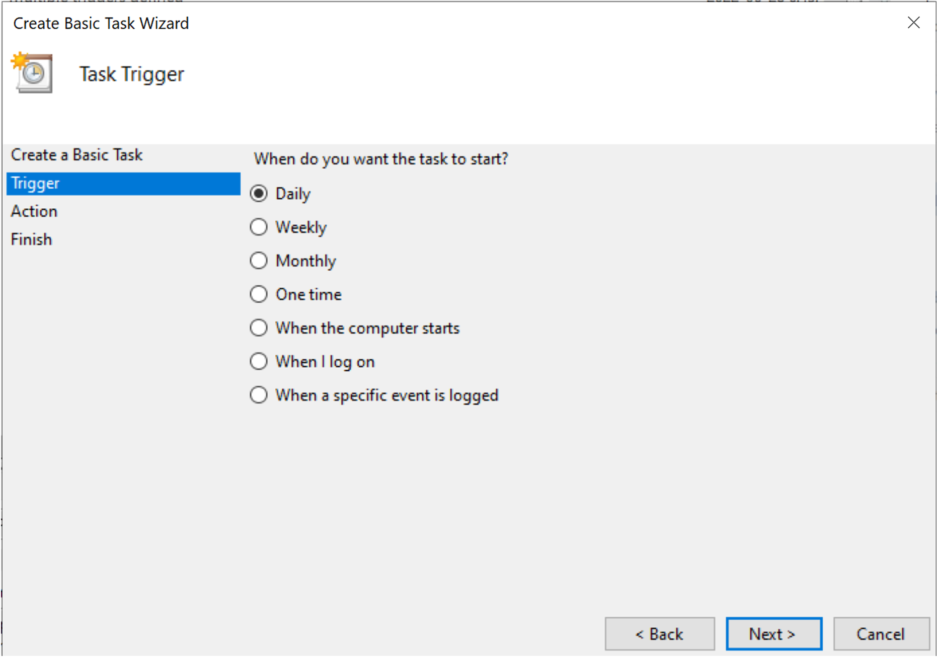 3) เลือกระบุรอบการทำงาน เช่น ทุกวัน (Daily) ทุกสัปดาห์ (Weekly) ทุกเดือน (Monthly) หรือเพียงครั้งเดียว (One time)