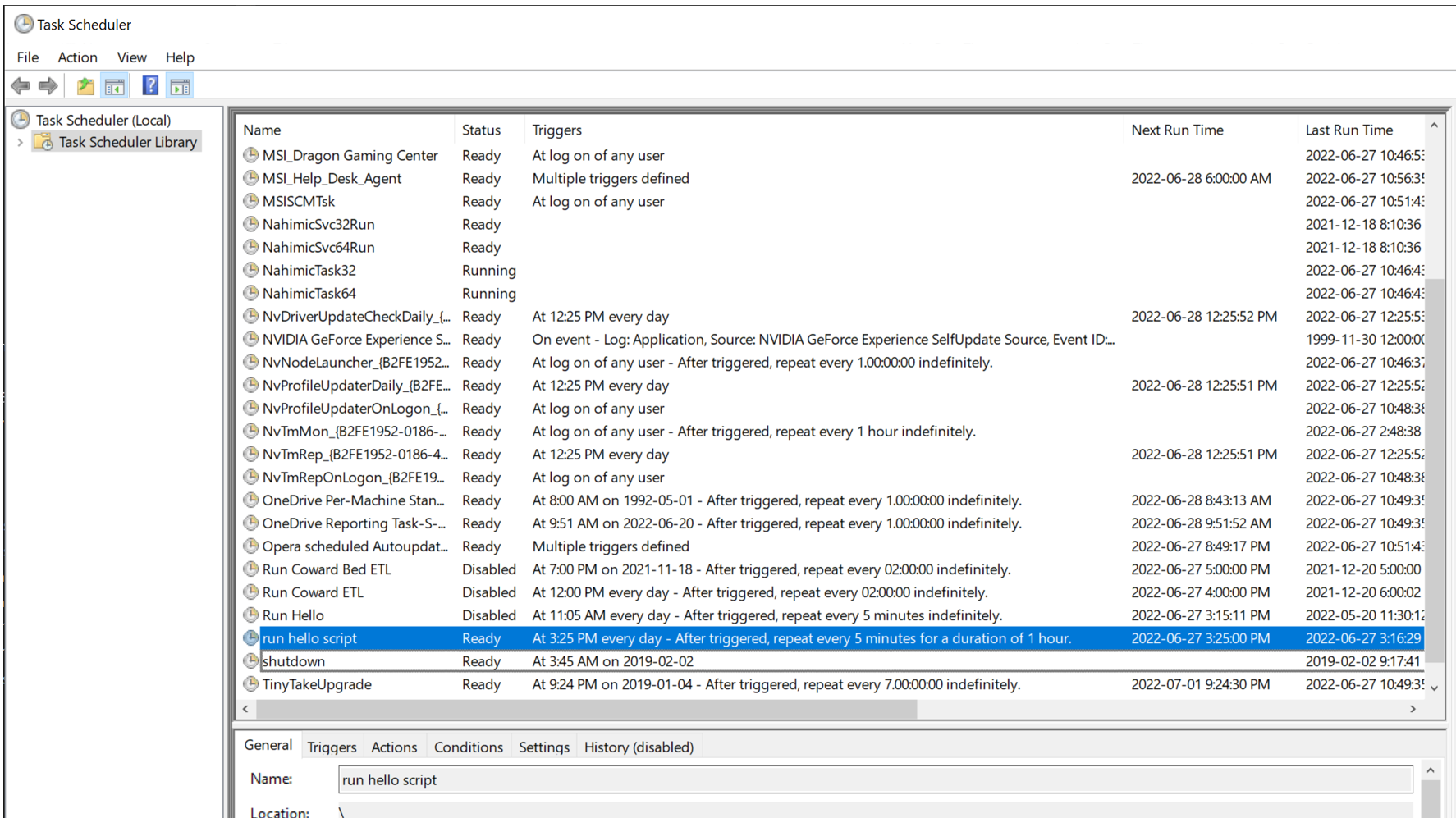 เช่น ในตัวอย่างเป็นการระบุให้ script เริ่มทำงาน วันที่ 27 เดือนมิถุนายน 2022 เวลา บ่าย 3 โมง 25 นาที 21 วินาที