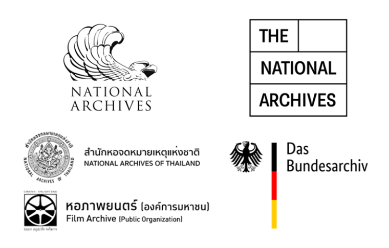 (ล่าง) สำนักงานหอจดหมายเหตุแห่งชาติ, หอภาพยนตร์ (องค์การมหาชน), และ Das Bundesarchiv (The National Archives) ของเยอรมนี