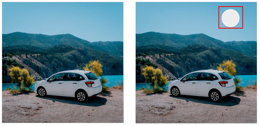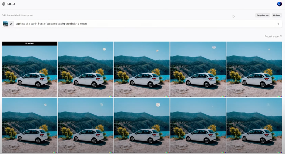 DALL·E 2 มีความสามารถในการปรับเปลี่ยนองค์ประกอบของรูปภาพต้นฉบับ โดยสามารถเลือกตำแหน่งในรูปต้นฉบับที่ต้องการเปลี่ยน จากนั้นสามารถพิมพ์คำสั่งเพื่อให้เพิ่มองค์ประกอบรูป ณ ตำแหน่งนั้นได้ ดังแสดงตัวอย่างในรูปที่ 10 ที่มีการเพิ่มพระจันทร์เข้ามาในรูปภาพในตำแหน่งที่เลือกไว้