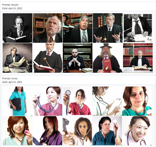 แม้ว่า DALL·E 2 จะมีการเรียนรู้จากภาพจำนวนมหาศาลในอินเตอร์เน็ต รูปของ DALL·E 2 ยังคงความอคติทั้งทางด้านเชื้อชาติและเพศอยู่ เช่น รูปส่วนใหญ่อาจเป็นชนชาติผิวขาวหรือชาวตะวันตก และในหลายอาชีพ DALL·E 2 จะสร้างรูปทั้งหมดเป็นเพศหญิงหรือเพศชายเท่านั้น