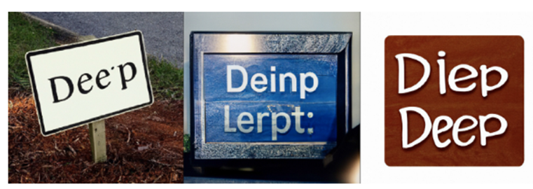 DALL·E 2 นั้นยังไม่สามารถสะกดคำในรูปภาพได้อย่างแม่นยำ ดังในตัวอย่างในรูปที่ 16 ที่จริง ๆ แล้ว ป้ายควรแสดงคำว่า “deep learning”