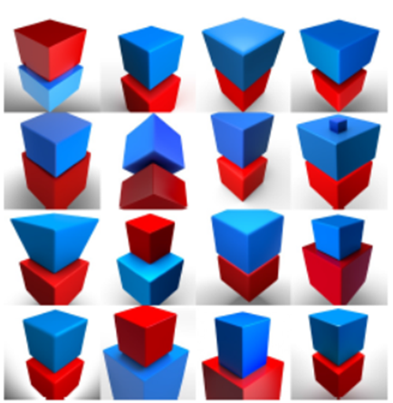ลูกบาศก์สีแดงบนลูกบาศก์สีน้ำเงิน