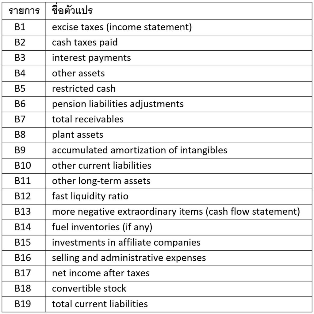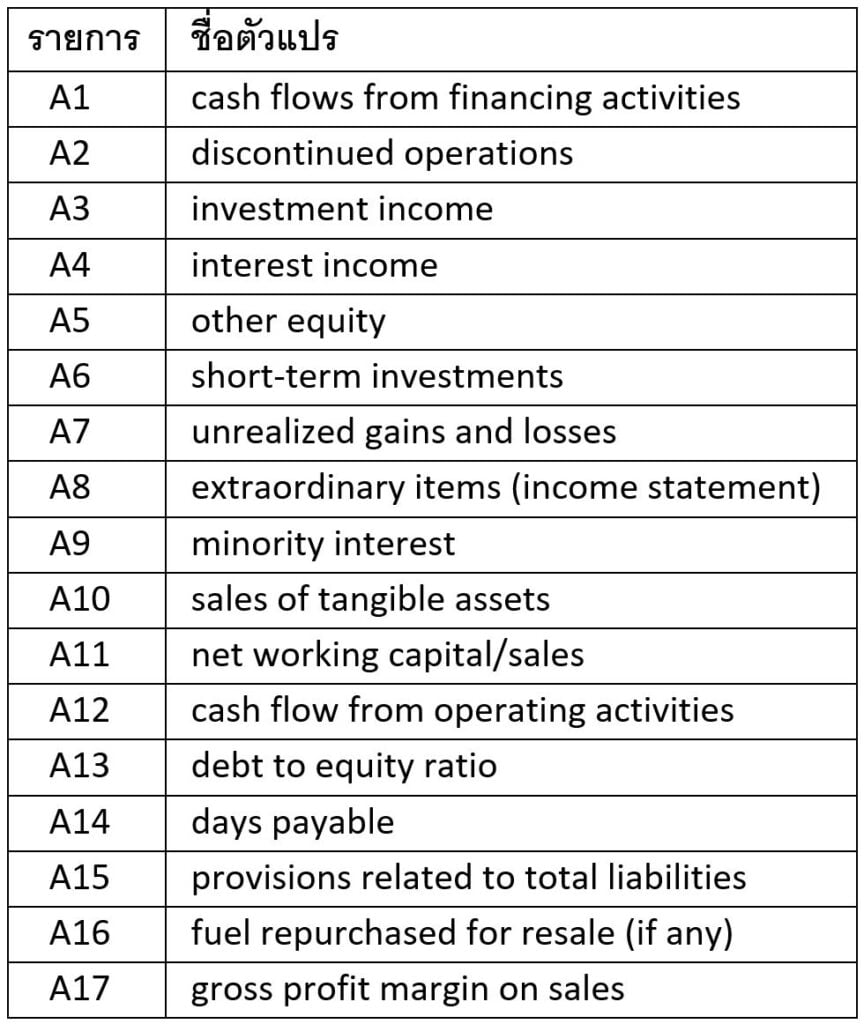 ใน algorithms ต่าง ๆ ทั้งหมดที่งานวิจัยชิ้นนี้ใช้ พบว่าบริษัทที่ไม่ซื่อสัตย์ จะมีค่าของตัวแปรต่าง ๆ เหล่านี้สูงกว่าในบริษัทปกติทั่วไป: