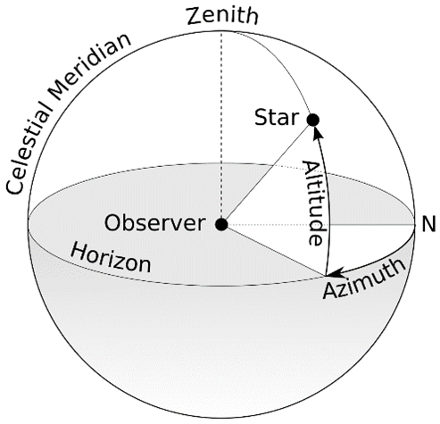 ภาพที่ 3 มุมเงย (Altitude) และมุมอะซิมุท (Azimuth)