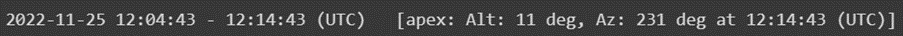 ทุกท่านสามารถเข้าไปศึกษาการใช้งานผ่านทาง Link นี้ได้เลยนะครับ โดยในตัวอย่างนี้จะเป็นการค้นหาโอกาสในการพบเห็นทางช้างเผือกที่ดีที่สุด สมมุติฐานที่ใช้ก็คือกึ่งกลางของทางช้างเผือก (ตัวแปรชื่อ milkyway_visual ในโค้ด) อยู่สูงจากเส้นขอบฟ้าอย่างน้อย 10 องศาจากจุดสังเกต และช่วงเวลาที่มืดที่สุดที่ใช้หาทางช้างเผือกที่เหมาะสมจะอยู่ในช่วงเวลา 2 ชั่วโมงหลังจากพระอาทิตย์ตก (ตัวแปร astrosunset) และพระจันทร์ลับขอบฟ้า จนถึงพระอาทิตย์ขึ้น (ตัวแปร sunrise) ซึ่งเราได้ลองกำหนดบริเวณพื้นที่เป็น ดอยหลวงเชียงดาว ในปี 2022 และให้โค้ดของเราหาคืนที่เหมาะสมตามเงื่อนไขที่กล่าวมาจะได้ผลลัพธ์ดังนี้