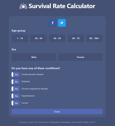 Avi Schiffmann ผู้คิดค้น Survival Rate Calculator นี้ที่ใช้ในเว็บไซต์ดังกล่าวเป็นเพียงเด็กมัธยมปลายอายุ 18 ปี ซึ่งทำให้เราเห็นว่า Big Data ไม่ใช่เรื่องยากอย่างที่หลาย ๆ คนคิด ที่จริงแล้วใคร ๆ ก็สามารถทำได้