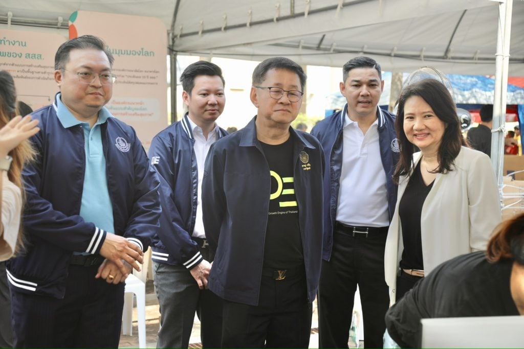 นายประเสริฐ จันทรรวงทอง รัฐมนตรีว่าการกระทรวงดิจิทัลเพื่อเศรษฐกิจและสังคม (ดีอี) พร้อมด้วย นายสุทธิเกียรติ วีระกิจพานิช ที่ปรึกษารัฐมนตรีว่าการกระทรวงดิจิทัลฯ, นายวัลลภ รุจิรากร