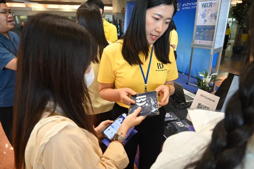 โดยภายในงาน BDI ได้ร่วมออกบูทนิทรรศการด้าน “การสื่อสารเพื่อการพัฒนาที่ยั่งยืน” เพื่อสร้างการรับรู้เกี่ยวกับภารกิจสถาบันฯ ภายใต้ 3 โปรเจกต์หลัก ประกอบด้วย 1.Project B.I.G: Big Data Integration and Governance ประสานและเชื่อมโยงข้อมูลที่จำเป็นจากหน่วยงานต่าง ๆ รวมทั้งให้บริการการวิเคราะห์ข้อมูลตามโจทย์และความเหมาะสม เพื่อให้เกิดการนำไปใช้อย่างเป็นระบบ ผ่านโครงการ Health Link, Travel Link, Envi Link, CDP: Smart Data Analytics Platform, Data Analytics Services และ Data Information Technology