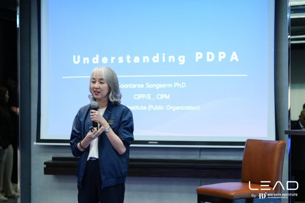 ช่วงถัดมาพบกับ ดร.สุนทรีย์ ส่งเสริม รองผู้อำนวยการสถาบันข้อมูลขนาดใหญ่ มาถ่ายทอดความรู้ให้ผู้เข้าร่วมอบรมในหัวข้อ “Understanding PDPA” โดยมองว่า แนวโน้มของข้อมูลที่ถูกละเมิดในอุตสาหกรรม 5 อันดับแรกคือ เรื่องของ Healthcare, Financial, Pharmaceuticals, Energy และ Industrial ซึ่งกลไกคณะกรรมการตามกฎหมายได้แบ่งออกเป็น 1. คณะกรรมการคุ้มครองข้อมูลส่วนบุคคล (กคส.) 2. คณะกรรมการกำกับสำนักงานฯ (กกส.) 3. คณะกรรมการผู้เชี่ยวชาญ 4 คณะ และ 4. สนง.คณะกรรมการคุ้มครองข้อมูลส่วนบุคคล
