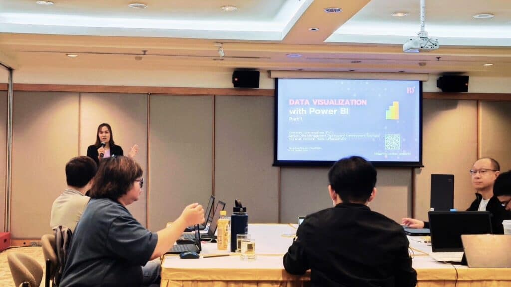 19 กันยายน 2567, กรุงเทพฯ – สถาบันข้อมูลขนาดใหญ่ (องค์การมหาชน) หรือ BDI ฝ่ายพัฒนากำลังคน นำโดย ผศ. ดร.ดวงใจ จิตคงชื่น ผู้อำนวยการฝ่ายพัฒนากำลังคน ดร.ปริสุทธิ์ จิตต์ภักดี ผู้จัดการฝึกอบรมและพัฒนาการจัดการข้อมูล ดร.ขวัญศิริ ศิริมังคลา ผู้เชี่ยวชาญด้านการฝึกอบรมและพัฒนาการจัดการข้อมูลอาวุโส พร้อมด้วยทีมผู้เชี่ยวชาญด้าน Big Data จัดโครงการการอบรมเชิงบรรยายและเชิงปฏิบัติการ ด้านทักษะการวิเคราะห์และการนำเสนอข้อมูล (Data Analytics and Visualization) ให้กับบุคลากรธนาคารเพื่อการส่งออกและนำเข้าแห่งประเทศไทย หรือ EXIM Bank โดยการอบรมแบ่งออกเป็น 3 หลักสูตร ดังนี้
