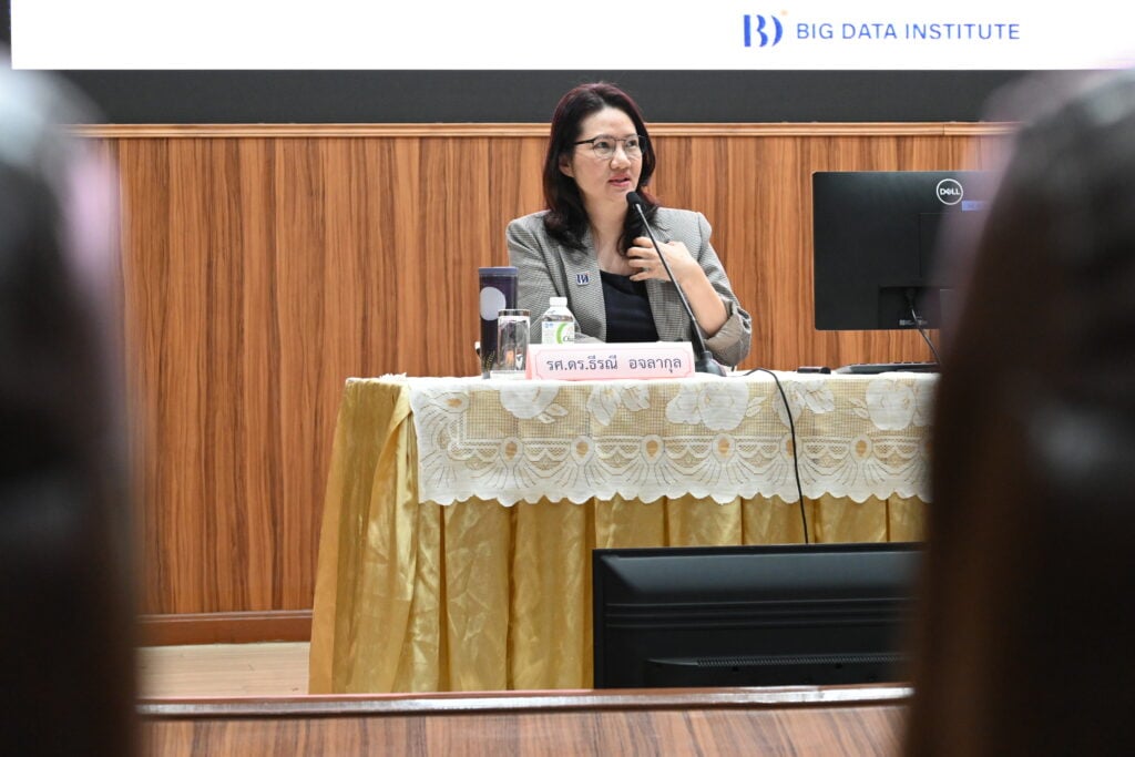 รศ. ดร.ธีรณี กล่าวว่า ยุคนี้ผู้บริหารระดับสูง ไม่อาจปฏิเสธความสำคัญของเทคโนโลยีปัญญาประดิษฐ์ (Artificial Intelligence: Al) ซึ่งแบ่งออกเป็น 3 ระดับ คือ Narrow, General และ Super โดยปัจจุบันในประเทศไทยมีการใช้ระบบ AI กันอย่างแพร่หลายอย่าง ChatGPT, Gemini และ Claude ทั้งนี้ ในส่วนของ BDI กำลังพัฒนา Thai Large Language Model (ThaiLLM) เพื่อเป็น “โครงสร้างพื้นฐานปัญญาประดิษฐ์สำหรับภาษาไทย” มุ่งสร้างความมั่นคงด้านภาษาไทย โดยร่วมมือกับพันธมิตรจากทุกภาคส่วน