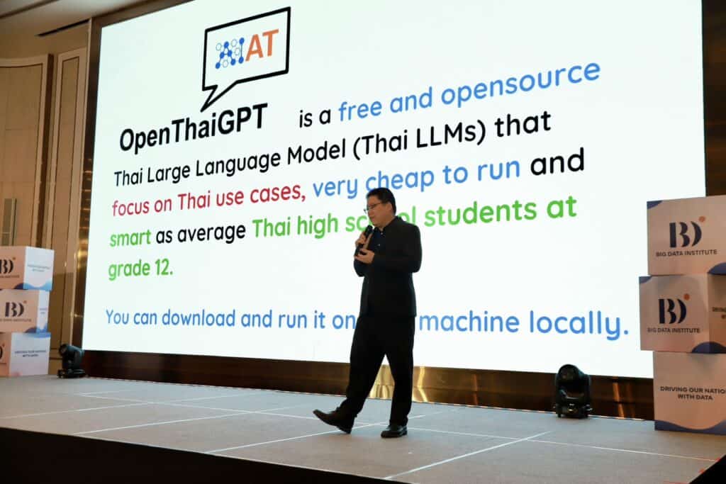ดร.ศิษฎพงศ์ เศรษฐภัทร Chief Technology Office, SCB dataX และมีการบรรยายพิเศษในหัวข้อ “ThaiLLM โดยคนไทย เพื่อคนไทย” โดย ดร.กอบกฤตย์ วิริยะยุทธกร นายกสมาคมผู้ประกอบการปัญญาประดิษฐ์ประเทศไทย พร้อมด้วยการเสวนาหัวข้อ “GenAI: อนาคตก้าวต่อไป” โดยผู้เชี่ยวชาญจากภาคอุตสาหกรรมและการศึกษา และปิดท้ายด้วย Workshop ในหัวข้อ “Prompt Engineer คุยกับ AI ให้ได้เรื่อง” โดย ดร.วราสิณี ฉายแสงมงคล อาจารย์ประจำสถาบันวิทยาการหุ่นยนต์ภาคสนาม (FIBO) มหาวิทยาลัยเทคโนโลยีพระจอมเกล้าธนบุรี ซึ่งเป็นการให้ความรู้เชิงปฏิบัติการแก่ผู้เข้าร่วมงาน