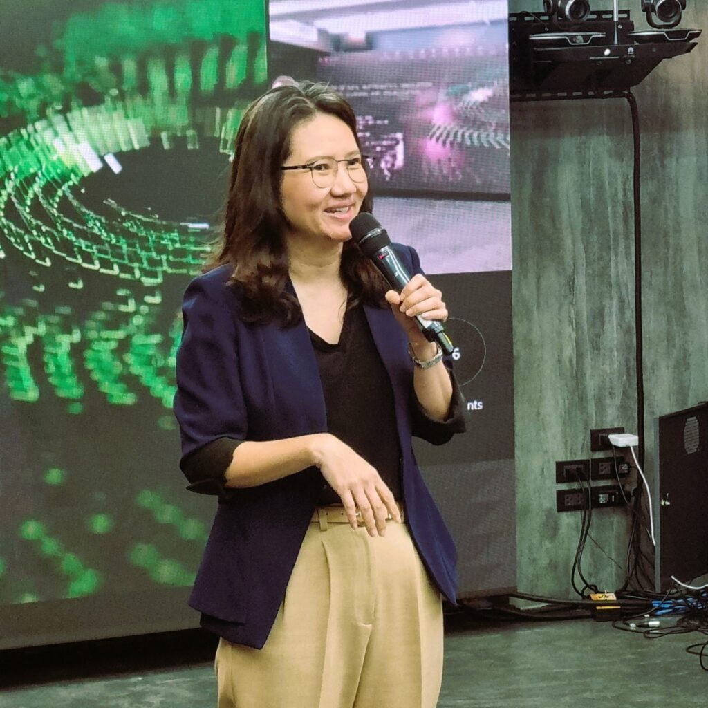 การบรรยายส่วนที่สอง โดย คุณเซงเมง คู Senior Deputy Director จาก AI Singapore บรรยายในหัวข้อ “Effective Innovation Intermediary Model for AI Adoption” ในการนี้ คุณเซงเมงได้นำประสบการณ์การทำงานของ AI Singapore ตลอดห้าปีที่ผ่านมา นำมาถอดบทเรียนผ่านมุมมองของประเทศสิงคโปร์ ฉายภาพให้เห็นตัวอย่างที่เป็นรูปธรรมตั้งแต่การสร้างระบบนิเวศ (Ecosystem) เพื่อที่จะให้การวางแผนแม่บทด้าน AI ในระดับประเทศสามารถนำไปปฏิบัติใช้ได้จริง ไปจนถึงปัจจัยสำคัญ และ Check-list ต่างๆ ที่จำเป็นจะต้องคำนึงถึง