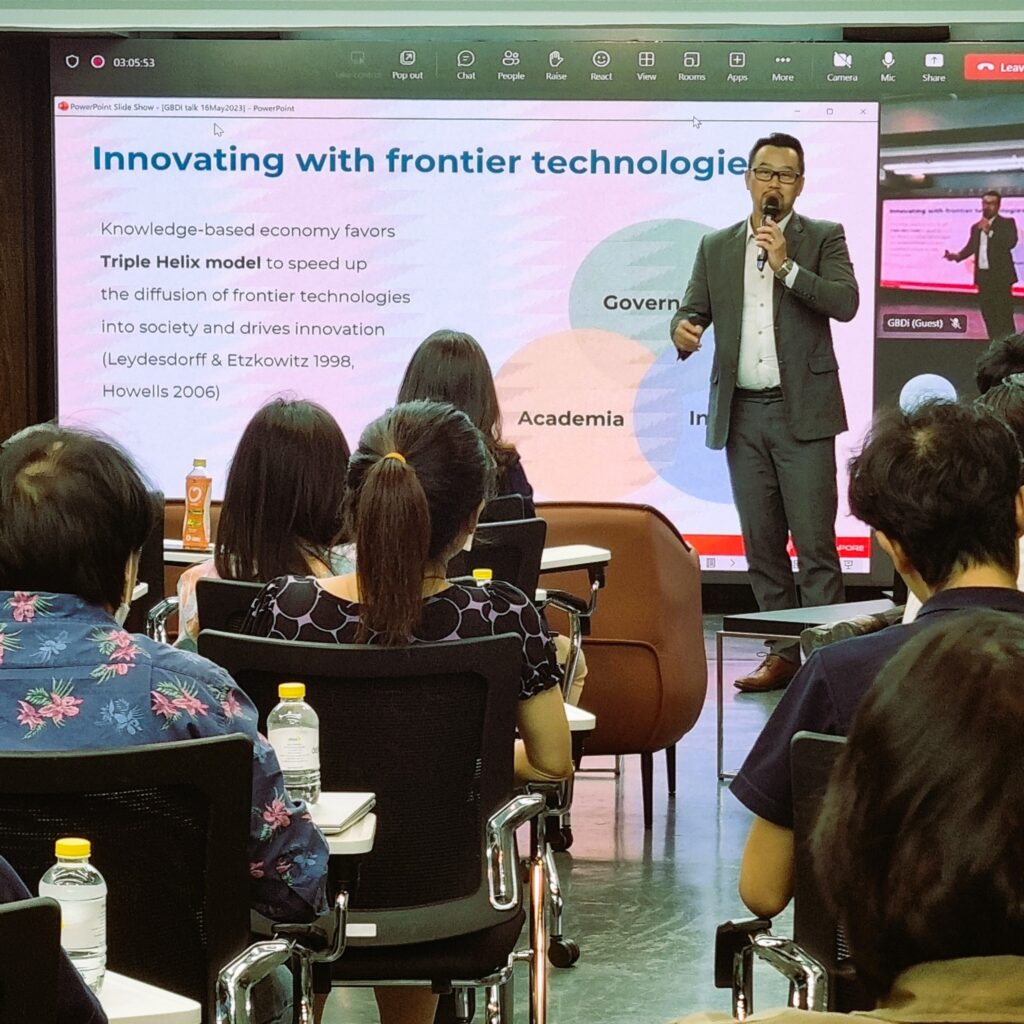 16 พฤษภาคม 2566, สำนักงานส่งเสริมเศรษฐกิจดิจิทัล (depa) – สถาบันส่งเสริมการวิเคราะห์และบริหารข้อมูลขนาดใหญ่ภาครัฐ (GBDi) นำโดย รศ.ดร.ธีรณี อจลากุล ผู้อำนวยการสถาบันฯ จัดงานสัมมนา Tech Meetup ครั้งที่ 1 ภายใต้หัวข้อ “The AI-powered Innovation” โดยมีวิทยากรสองท่านจากประเทศสิงคโปร์เดินทางมาบรรยาย ตั้งแต่เวลา 13:30-16:00 น. ในการนี้มีนางสาวอัจฉรินทร์ พัฒนพันธ์ชัย อดีตปลัดกระทรวงดิจิทัลเพื่อเศรษฐกิจและสังคม และตัวแทนจากหลายหน่วยงานร่วมเข้าฟัง อาทิ สำนักงานสถิติแห่งชาติ, สำนักงานการวิจัยแห่งชาติ, กรมอุตุนิยมวิทยา, สำนักงานสภาพัฒนาการเศรษฐกิจและสังคมแห่งชาติ, การท่องเที่ยวแห่งประเทศไทย, ศูนย์เทคโนโลยีอิเล็กทรอนิกส์และคอมพิวเตอร์แห่งชาติ, การไฟฟ้าส่วนภูมิภาค และสำนักปลัดกระทรวงสาธารณสุข เป็นต้น