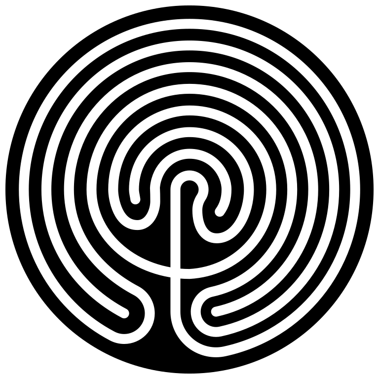 Version of the ancient "Cretan" type of labyrinth contained in a circular disk, somewhat similar to the design on an ancient coin of the city of Knossos. (For other variants of the labyrinth, see File:Cretan-labyrinth-square.svg , File:Cretan-labyrinth-half-round.svg , File:Cretan-labyrinth-round.svg , and File:Cretan-labyrinth-round2.svg .) |