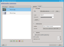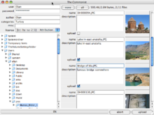 ComeOn! is a free tool written in Java to upload pictures to Wikimedia Commons with extended support for JPEG metadata and its use in page templates. JPEG is the only picture format that is supported (no PNG, no SVG)[1]. It is currently in beta mode but stable. It also supports audio files.
